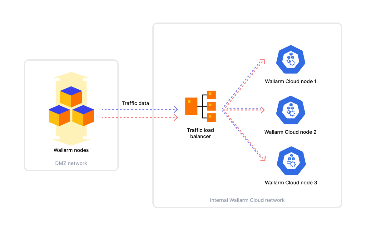 In a cluster deployment, a network load balancer is required to distribute traffic across active Wallarm Cloud nodes. There are two supported options: