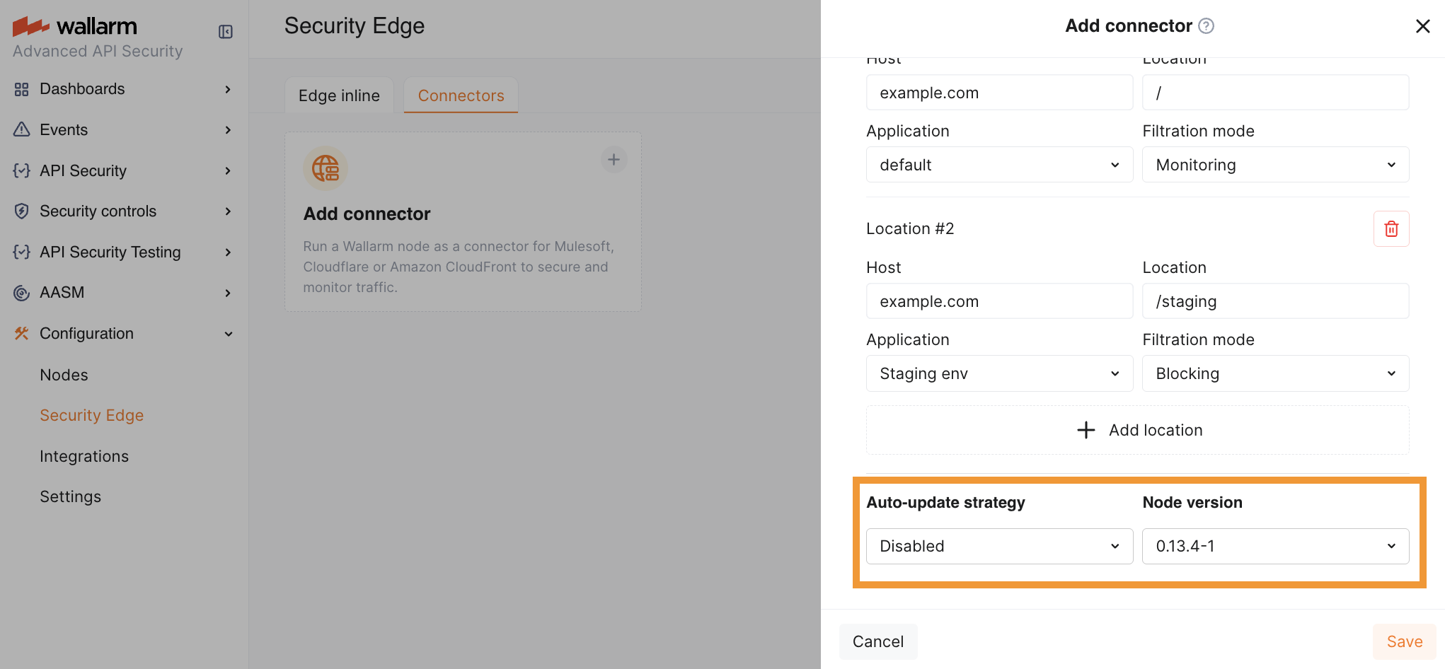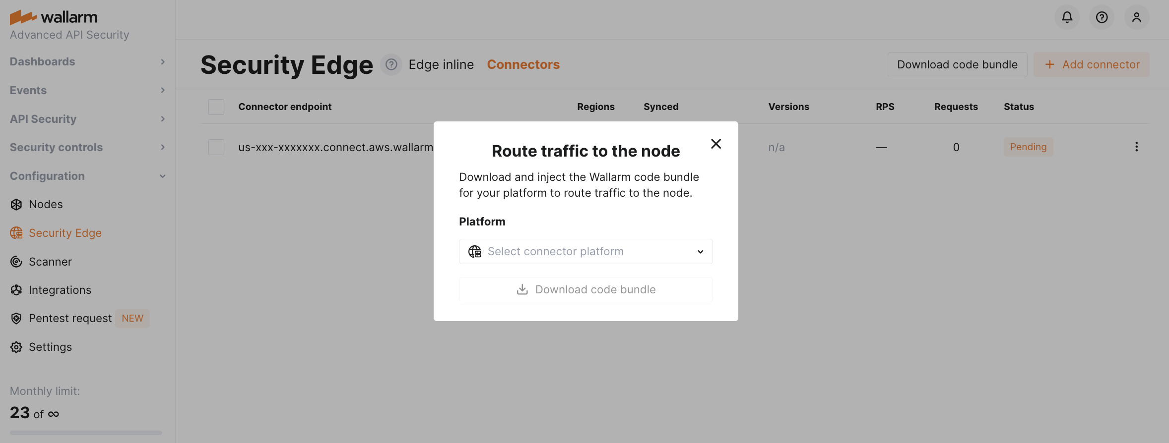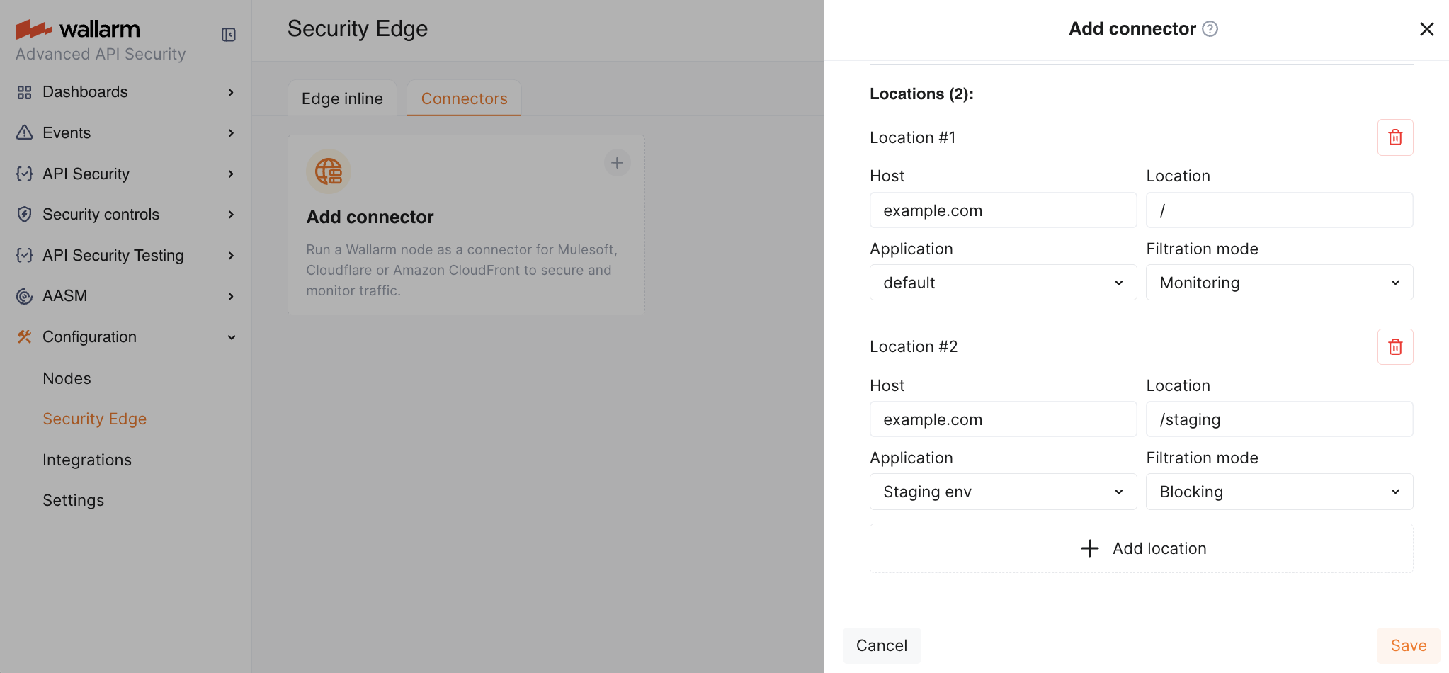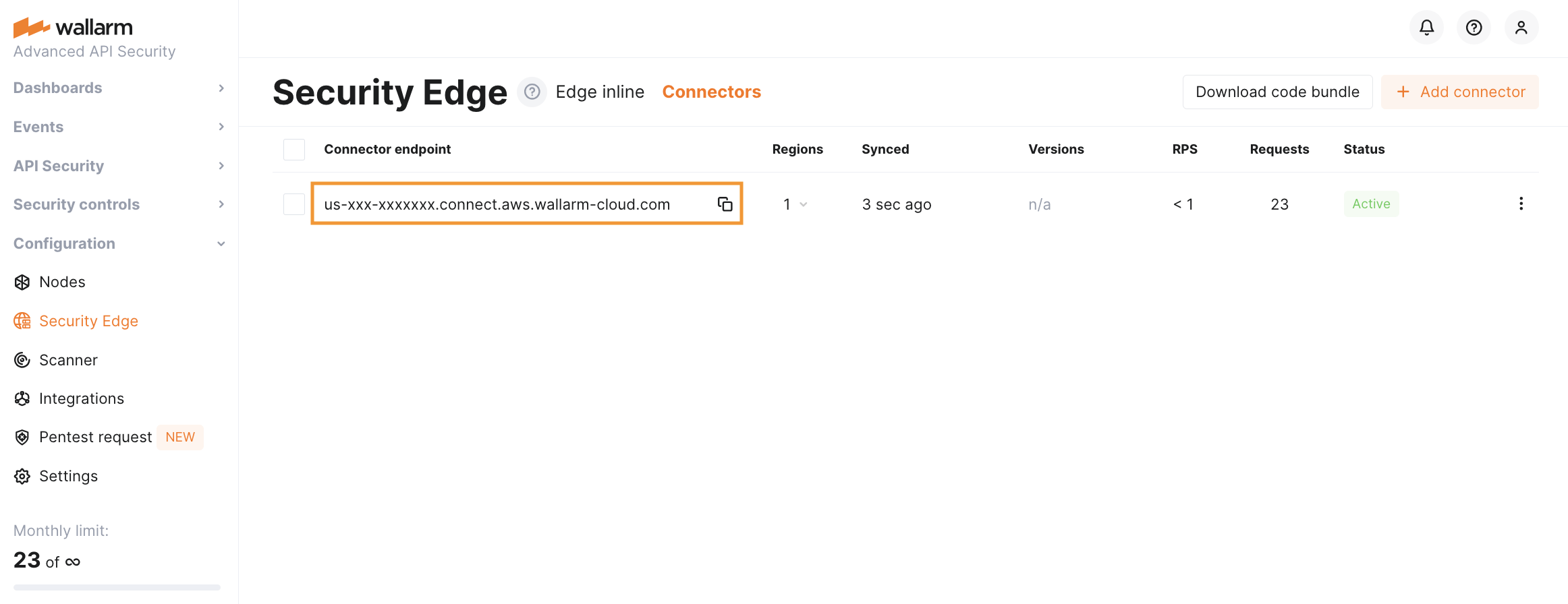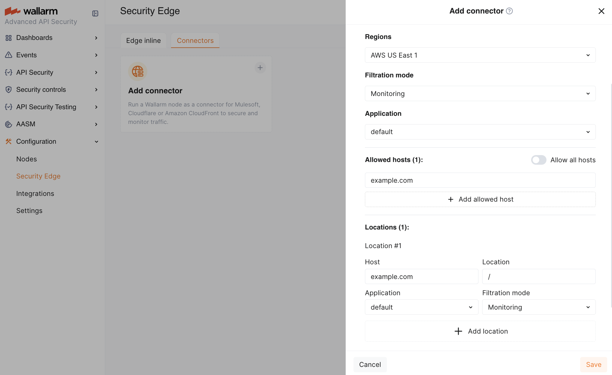 Proceed to Wallarm Console → Security Edge → Connectors → Add connector.